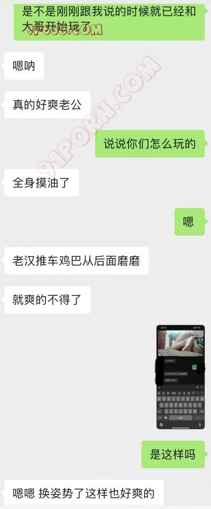 被陌生的人鸡吧在妻子的骚逼边上来回摩擦,感觉好刺激,于是就发生了下面的对话